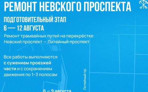 • обновление трамвайных путей на перекрестке Невского проспекта и Литейного проспекта — с 6 по 12 августа.