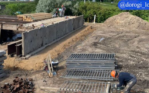 возводится временный мост (опоры и пролетное строение уже готовы)