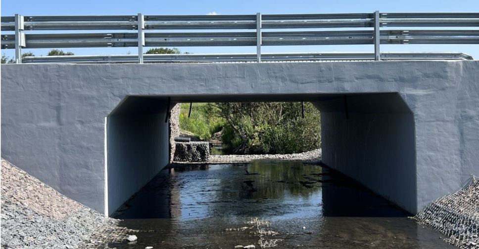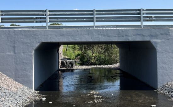 Длина пролетного строения составляет 7,5 метров. Переправа расширилась до 12 метров с учетом пешеходной зоны и двух полос дорожного движения по 3 метра каждая. На обновленном мосту оборудован тротуар шириной 2,25 метра с перильным ограждением из композитных материалов. На проезжей части моста уложены гидроизоляция и несколько слоев асфальтобетона. Все деформационные швы имеют закрытый тип.