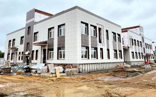В Агалатово детский сад уже начинает обретать свой яркий облик — строители устанавливают большие витражные окна в стенах, сквозь которые свет скоро будет заливаться в игровые комнаты.