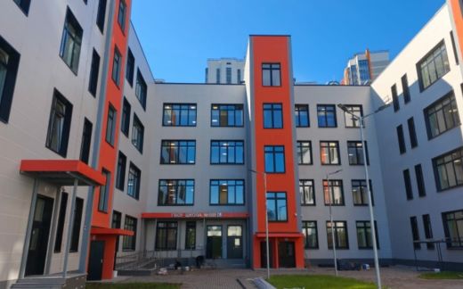 Современное четырехэтажное здание школы построено на Московском шоссе, д. 3, корп. 6, стр. 1 и примет первых учащихся уже 1 сентября 2025 года.