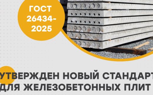 ГОСТ 26434-2025 «Плиты перекрытий железобетонные для жилых зданий. Типы и основные параметры» вступает в действие с 2026 года.