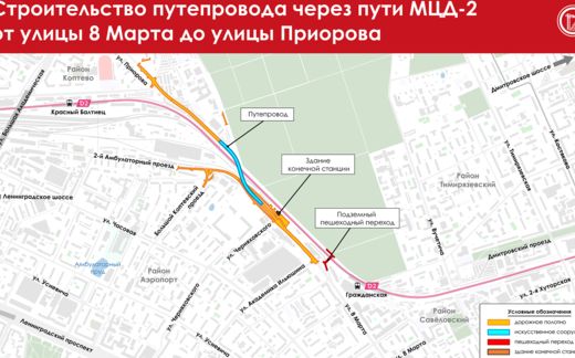 Начинается строительство путепровода через пути второго Московского центрального диаметра (МЦД-2) от ул. 8 Марта до ул. Приорова, сообщил мэр столицы Сергей Собянин.