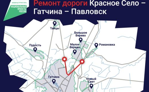 В Гатчинском муниципальном районе стартовали ремонтные работы – на участке дороги Красное Село – Гатчина – Павловск протяженностью более 6 километров (затронет часть Красносельского и Пушкинского шоссе). Обновление проходит в рамках национального проекта «Инфраструктура для жизни».