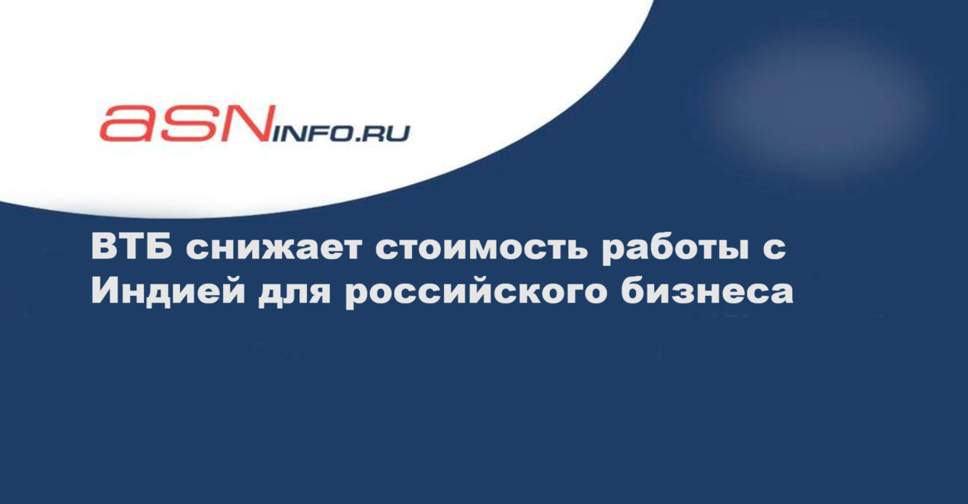 ВТБ снижает стоимость работы с Индией для российского бизнеса