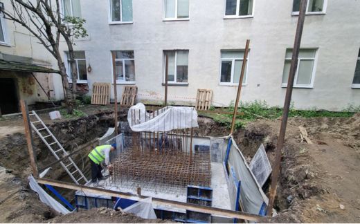 Подрядчик уже подготовил основание под фундаменты будущего перехода. Сейчас строители выполняют работы по армированию и устройству опалубки. В ближайшее время приступят к бетонированию фундаментов.
