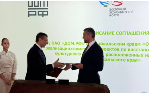 ДОМ.РФ и правительство Забайкальского края заключили соглашение о сотрудничестве в сфере восстановления объектов культурного наследия. Соглашение было подписано в павильоне Забайкалья на юбилейном восточном экономическом форуме, который проходит с 3 по 6 сентября во Владивостоке.