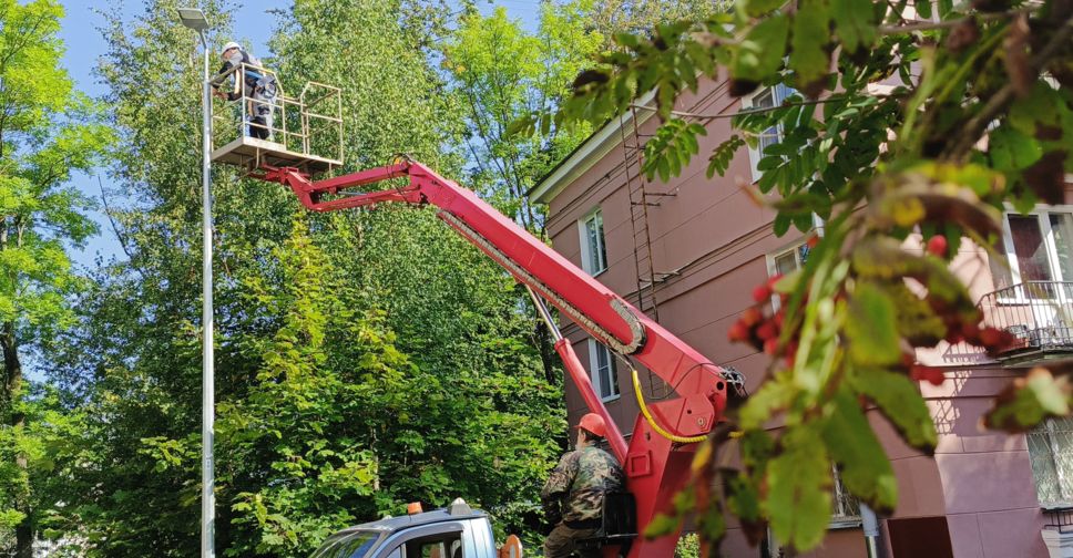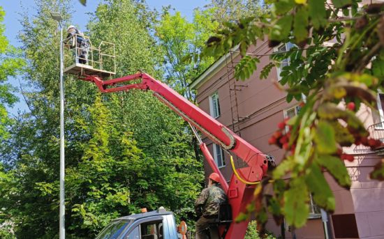В жилом квартале напротив Соборного сквера в Пушкине начался монтаж наружного освещения