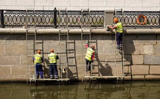Глава Комплекса городского хозяйства подчеркнул, что для москвичей такие работы проходят практически незаметно, так как строительные леса устанавливают со стороны воды и потом передвигают с участка на участок.