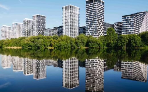 Он состоит из семи корпусов переменной этажности от 9 до 21 этажей, которые рассчитаны на 1419 квартир.