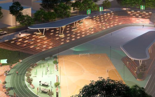 Все пространство будет связано удобными пешеходными маршрутами с лестничными сходами. Проект предусматривает создание безбарьерной среды для маломобильных жителей.