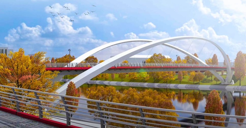 Мост будет с арками, напоминающими крылья. Его пролет украсят декоративными деталями красного цвета. Разместят архитектурно-художественную подсветку.