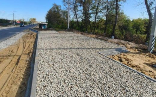 Подрядчик завершил устройство подстилающего слоя из песка, нижнего и верхнего слоев основания из щебня, нижнего и верхнего слоев дорожной одежды.