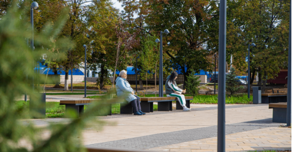 Подрядная организация установила новые осветительные приборы, уложила тротуарную плитку и обустроила зоны отдыха с качелями, лавочками и урнами. Также появились детские игровые площадки с резиновым покрытием.