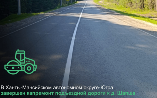 Капитальный ремонт завершен на подъездной дороге к д. Шапша. Работы выполнены благодаря реализации нацпроекта «Инфраструктура для жизни». Трасса пользуется популярностью среди туристов, посещающих центральную часть Югры. Деревня Шапша славится своими достопримечательностями, такими как эколого-просветительский центр «Шапшинское урочище» и старинная церковь святого преподобного Евфимия Великого, одна из важнейших религиозных построек региона.
