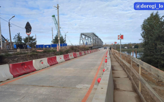 В Кингисеппском районе, в поселке Усть-Луга, стартовал новый этап работ в ходе капитального ремонта моста через реку Луга. Здесь рабочие перепустили движение со старого моста на временный. Тут движение организуется в реверсиве – с помощью мобильного светофора.