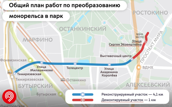Московский монорельс был возведён больше 20 лет назад. Последние годы он работал в экскурсионном режиме, фактически утратив свою транспортную функцию после открытия МЦК, продления Люблинско-Дмитровской линии метро и развития наземного городского транспорта.