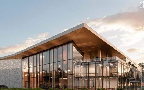 Фасады здания оформят с помощью металлических панелей и витражей. Основной акцент сделают на стеклянных поверхностях — они обеспечат естественное освещение и визуальную открытость.