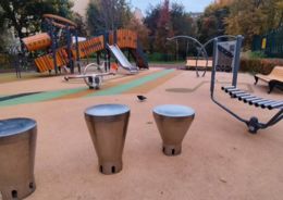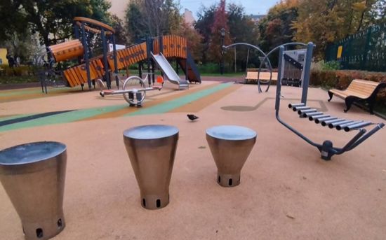 Также в сквере установили уличные музыкальные инструменты производства НПО Hercules - ксилофон, уличные барабаны.