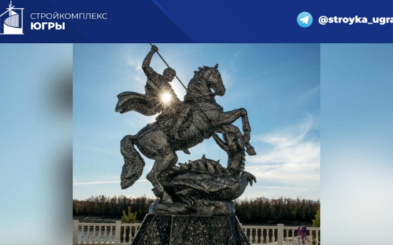 Теперь набережную жилого комплекса украшает необычный памятник Великомученику Георгию Победоносцу. Его главная особенность — перфорированная конструкция.