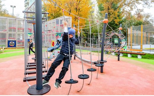 В районе Якиманка ЦАО, неподалеку от обновленного сквера на улице Донской, создали многоуровневый игровой комплекс с волнообразными лазилками и горками. Здесь ребята могут тренировать силу, ловкость и координацию. Городок спроектирован по подобию лабиринта, который нужно пройти, чтобы попасть на горку или верхние уровни. Рядом установили веревочную полосу препятствий, качели-гнезда, балансиры и карусель.