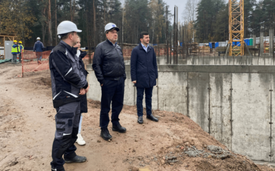 Председатель комстроя Ленобласти Виталий Лазуткин в рамках рабочей поездки в Выборгский район проверил ход строительства поликлиники в микрорайоне Южный в Выборге.