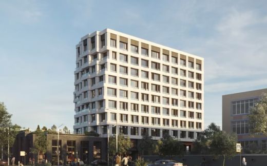 ЖК ОСТ ПРАЙМ СОЙФЕРА возводится на участке площадью чуть более 3 тыс. кв. м. Помимо жилого дома на нем появятся детская и спортивная площадка.