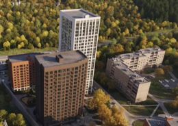 Первый из трех домов жилого комплекса построят к концу 2027 года. Его общая площадь составит 8 тыс. кв. м. В 18-этажном здании появится 148 квартир площадью от 39 до 74 кв. м, коммерческие помещения и кладовые. Запроектированы одно-, двух- и трехкомнатные квартиры, которые будут сдавать с предчистовой отделкой.