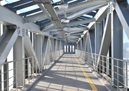 «Общая протяженность пролетных строений надземного пешеходного перехода составит около 200 метров. Сейчас идут работы по возведению монолитных конструкций башенных опор. Произвели монтаж четырех из шести металлоконструкций пролетных строений. Переход оборудуют лифтами», – сказал Василий Десятков.