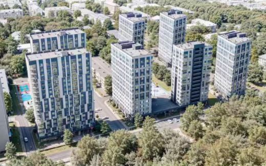 В состав проекта войдут 863 квартиры средней площадью 52 кв. м и около 800 кв. м коммерческих помещений. Предусмотрены четыре скоростных лифта в подъезде, дизайнерская отделка мест общего пользования, зона ожидания и консьерж в холле, а также колясочные и велосипедные. Во дворе выполнят комплексное благоустройство.