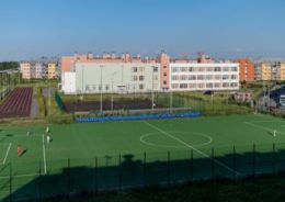 Особое внимание уделено спортивной инфраструктуре. На пришкольной территории обустроены футбольное поле, площадки для волейбола и баскетбола, беговые дорожки, тренажёры, полоса препятствий и яма для прыжков в длину.