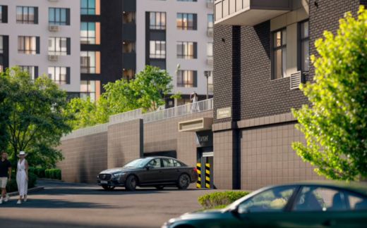 В подъездах запроектированы колясочные. На первом этаже будут коммерческие помещения и детский сад на 47 мест. Подземный этаж отдан под кладовые и паркинг на 245 автомобилей.