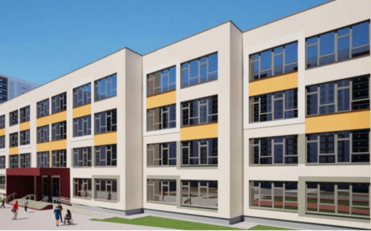 На прилегающей территории разместят футбольное поле, площадки для баскетбола, прыжков в высоту и длину, а также 100-метровую беговую дорожку. Перед главным входом появится площадка для проведения школьных праздников и торжественных мероприятий.