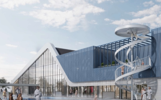 Будущее здание спроектировано в динамичной пластике и напоминает волну — такой образ выбран в связи с ключевой функцией комплекса. Внутри разместят большой бассейн для занятий водными видами спорта, а также трибуны для зрителей. Для семейного отдыха предусмотрены отдельные бассейны для взрослых и малышей с безопасным неглубоким дном.
