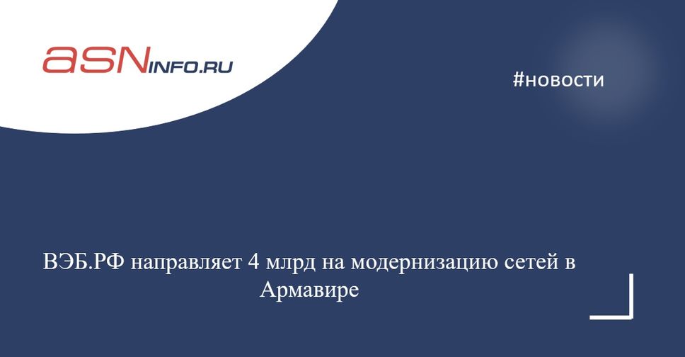 ВЭБ.РФ направляет 4 млрд на модернизацию сетей в Армавире