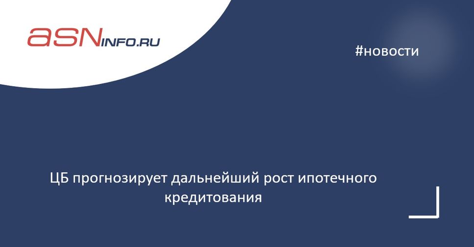 ЦБ прогнозирует дальнейший рост ипотечного кредитования