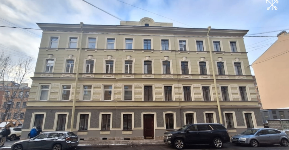 Построенное в начале XX века здание сильно пострадало во время Великой Отечественной войны. Специалисты Комитета по градостроительству и архитектуре подобрали для фасада цвета из петербургской традиционной палитры. Фисташковый — для стены первого этажа, а тепло-зелёный оттенок — для остальных.