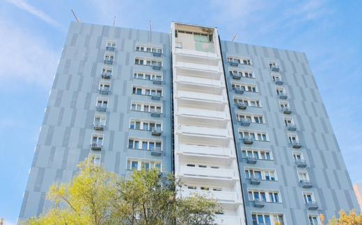 После расчистки и промывки фасадов, а также ремонта межпанельных швов специалисты установили кронштейны по всей поверхности зданий. Затем они утеплили фасады плитами из минеральной ваты и установили оконные обрамления. Поверх прикрепили направляющие и обшили дома панелями из фиброцемента.
