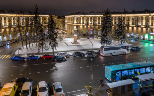 Завершены работы по оформлению архитектурно-художественной подсветкой фасадов зданий, расположенных в границах Привокзальной площади Колпино.