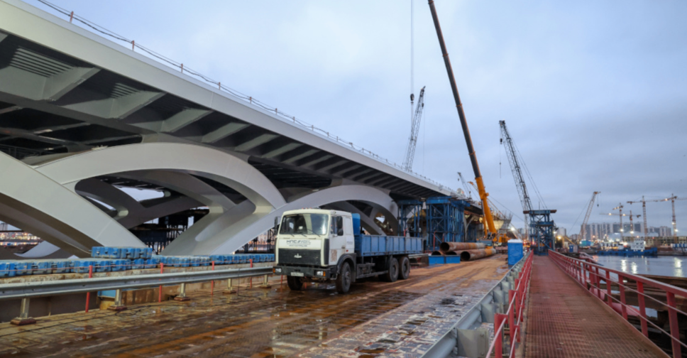 «Смонтированы два крыла разводного моста по 400 тонн каждое. Это очень важный и самый сложный инженерный этап в строительстве этого моста», - сказал Александр Беглов.