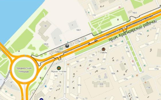 Для расширения проезжей части необходимо демонтировать шесть торговых объектов по адресам: пр. им. газ. «Красноярский рабочий», 176г, 176д, 176ж, 176к, 176л, 176м. Выкуп объектов недвижимости начнётся в январе 2026 года. Оценка уже проведена, собственники ознакомлены с её результатами. В течение месяца после перечисления средств собственники должны будут освободить помещения. В рамках реконструкции на месте кафе и магазинов появится благоустроенная территория с пешеходными дорожками, деревьями и кустарниками (яблони, сирень, жимолость), скамейками и урнами.