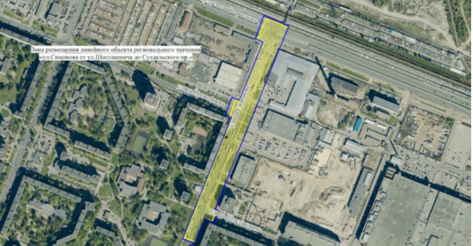 Участок улицы Симонова от улицы Шостаковича до Суздальского проспекта находится вблизи строящегося жилого дома и будущего детского сада на 140 мест. Протяжённость участка – 530 метров. Здесь будут организованы четыре полосы движения, пущен общественный транспорт. После завершения строительства улицу передадут городу. На данный момент улица Симонова двухполосная и фактически существует только от проспекта Просвещения до улицы Прокофьева. На участке от улицы Прокофьева до Суздальского проспекта расположена грунтовая дорога, которая используется для подъезда к расположенным рядом предприятиям.
