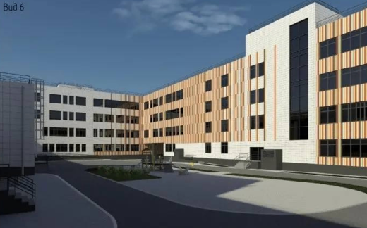 Снаружи школа будет в светлых тонах с ярким акцентом в виде меланжа (это комбинация различных оттенков), палитра цветов которого представляет смешение белого, золотистого, оранжевого и свинцового. Это позволит вписать объект в окружающую среду, ведь площадка для учреждения расположена в существующем микрорайоне с уже сложившейся цветовой гаммой. Внешний облик объекта согласован на комиссии по архитектурно-градостроительному облику.