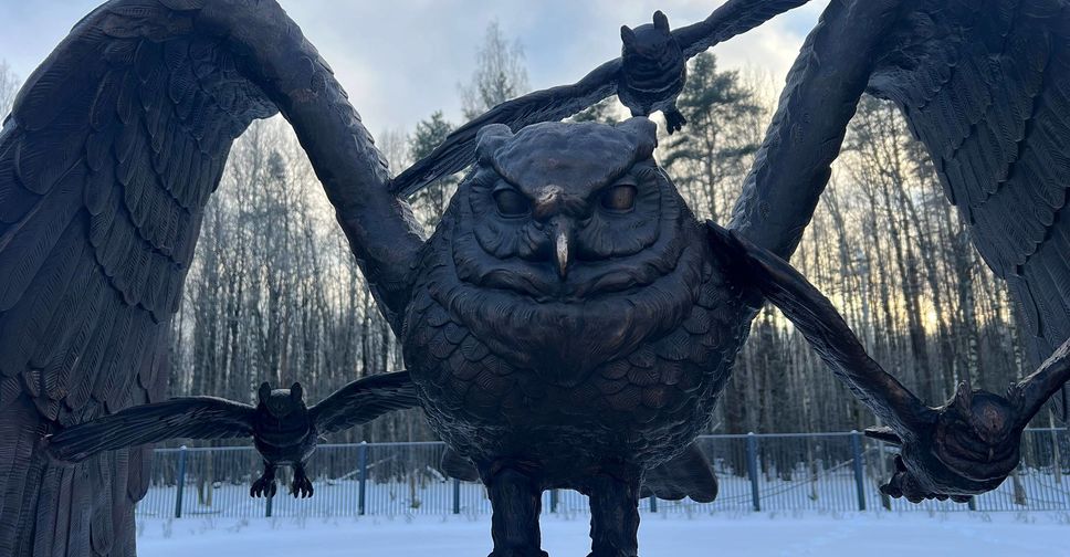 В школе на 1050 мест в ленинградском Новоселье установили скульптуру «Сова и совята»