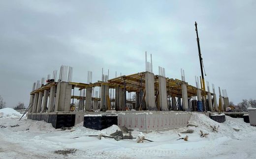 В селе Рождествено продолжаются работы по возведению нового дома культуры на 150 мест. Строители возводят стены и пилоны первого этажа, монтируют перекрытия и обвязочные балки. Скоро подрядчик приступит к вязке арматуры для следующих этапов.