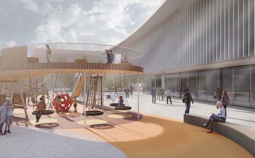 Благоустройство. Точкой притяжения станет парк с амфитеатром и медиаэкраном для трансляции ключевых событий региона. Зимой прогулочные дорожки планируют заливать, превращая их в каток. Рядом обустроят флагманскую детскую площадку — пространство, объединяющее игру и современное искусство с использованием самых современных технологических решений.