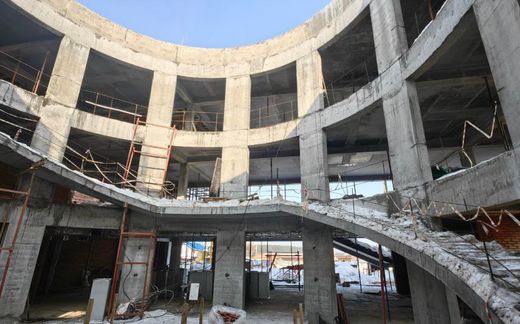 Параллельно на объекте ведутся электромонтажные работы, монтаж систем вентиляции, кондиционирования, а также работы по устройству наружных тепловых сетей и сетей водоснабжения.