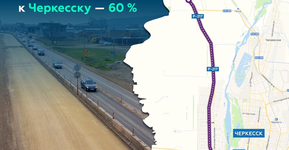 Речь об участке с 51-го по 63-й км — от съезда в село Садовое до пересечения улиц Ставропольской и Набережной в Черкесске. Полностью завершим работы в ноябре 2026 года.