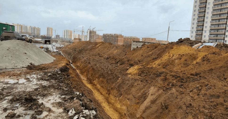 Подрядчик выкапывает траншеи и укладывает трубы. Уже выполнено порядка 2000 метров, обустроено больше 35 коллекторов.