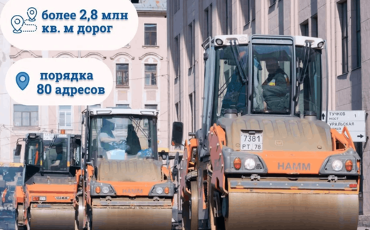 В Санкт-Петербурге дорожники ежегодно приводят в нормативное состояние большое количество городских магистралей. В 2026 году будет обновлено более 2,8 млн кв. м дорог, в адресную программу ремонта вошли порядка 80 адресов.